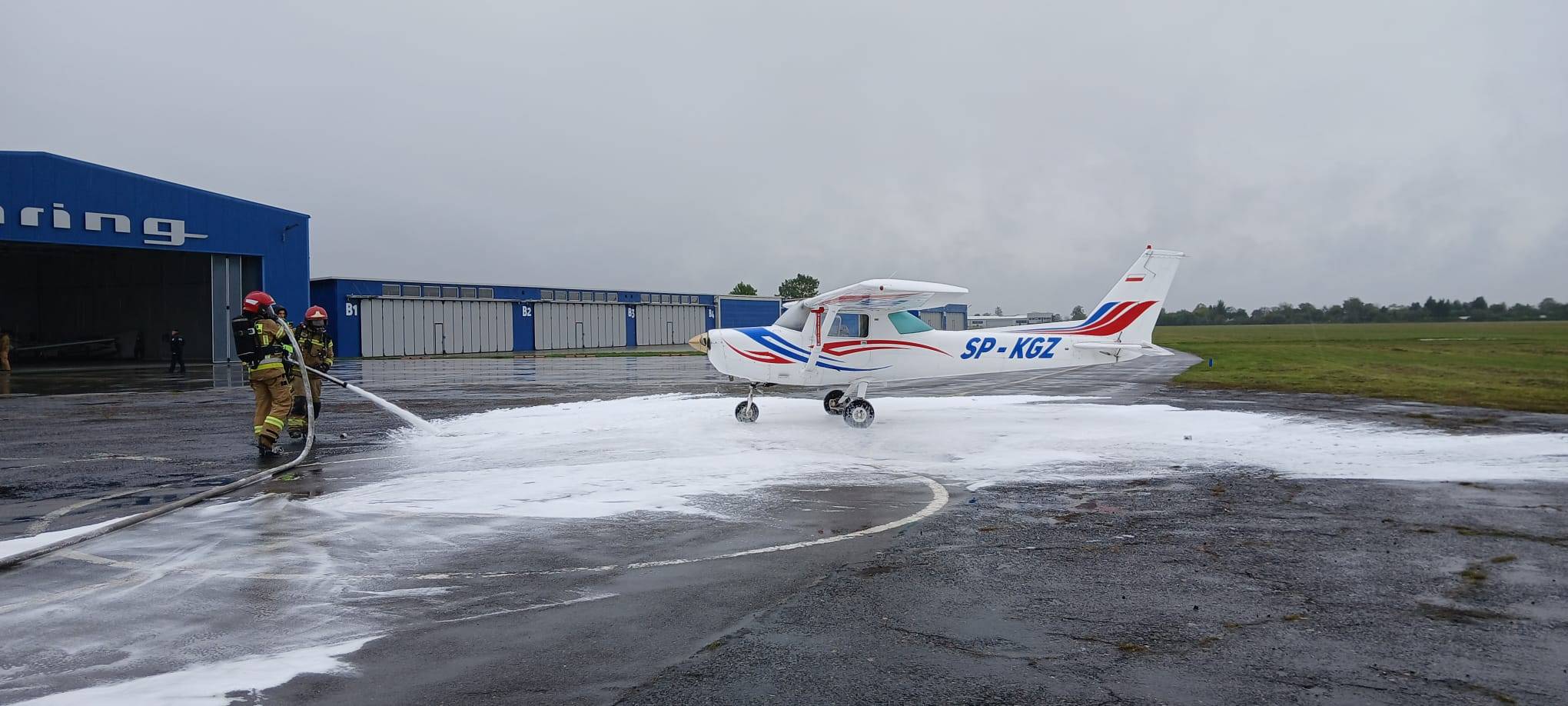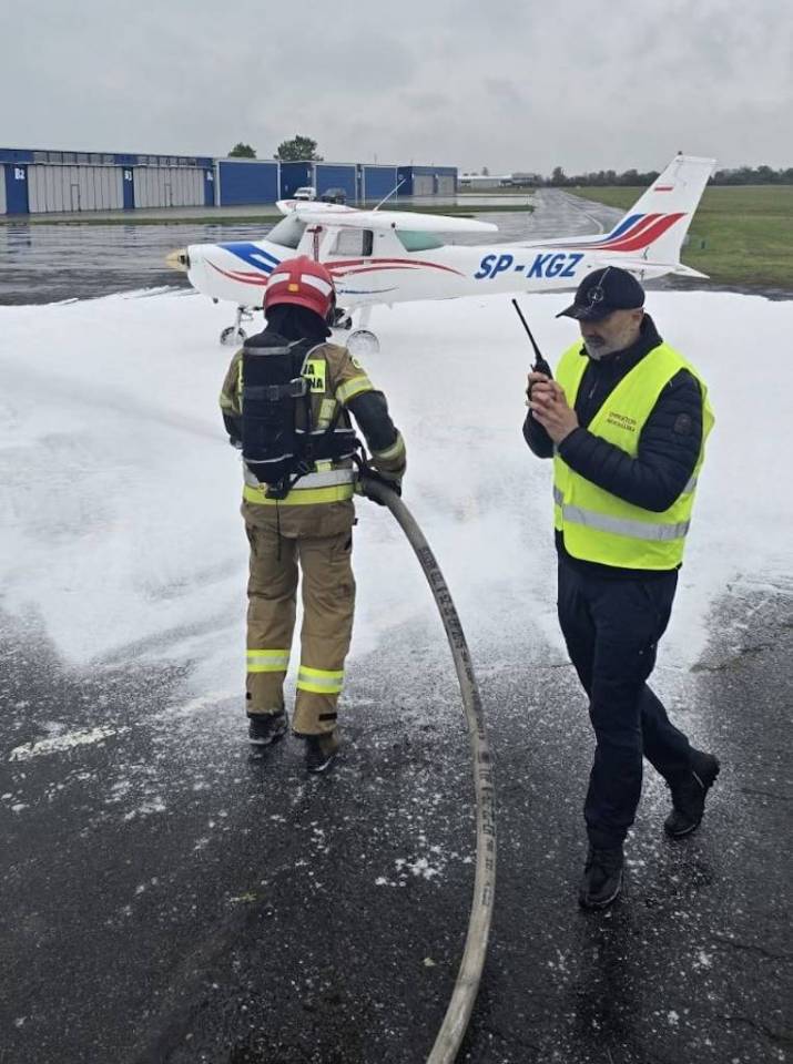 Na sygnał alarmowy natychmiast zareagowały służby. Strażacy błyskawicznie zabezpieczyli miejsce pozorowanej katastrofy, wykorzystując pianę gaśniczą, a następnie wydobyli nieprzytomną załogę samolotu. Równolegle zespoły ratownictwa medycznego udzieliły pierwszej pomocy i przetransportowały „poszkodowanych" do szpitala. Teren lotniska został zabezpieczony przez policję, a operacje lotnicze wstrzymano na czas akcji ratowniczej, zgodnie z wydanym NOTAM-em – oficjalnym ostrzeżeniem dla ruchu lotniczego.