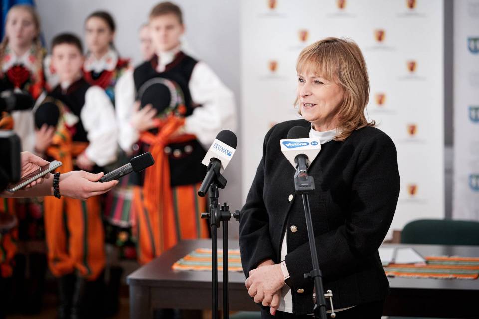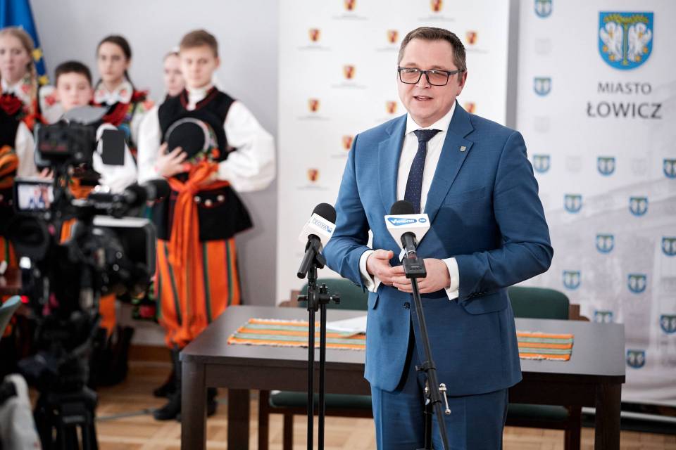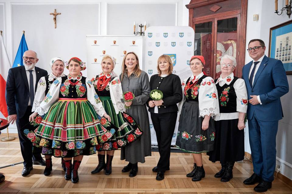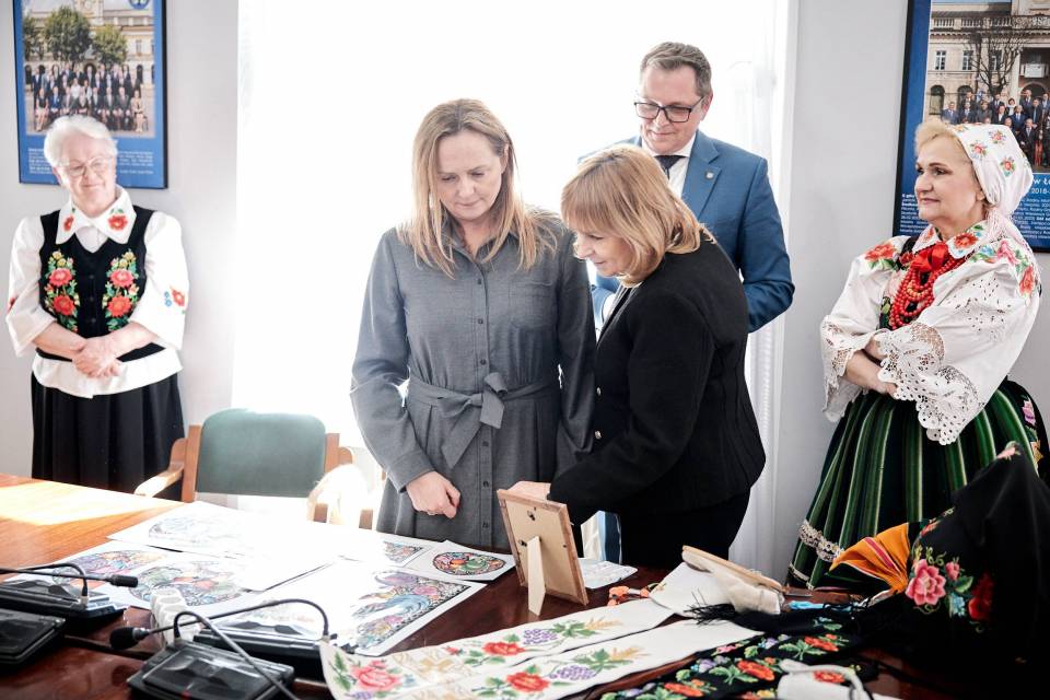 - A folklor to jest opowieść o nas samych. I to od nas zależy, jak ją napiszemy. Trzymam mocno kciuki, abyście napisali piękną historię, którą z dumą będziemy przekazywać kolejnym pokoleniom - mówiła marszałek Joanna Skrzydlewska zwracając się m.in. do twórczyń ludowych i dzieci z zespołu ludowego Koderki, które towarzyszyły władzom Łowicza przy podpisaniu umowy na dofinansowanie Centrum Folkloru.