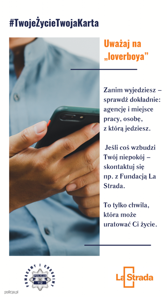 Więcej informacji o kampanii można znaleźć pod hasłem: Rusza kampania #TwojeŻycieTwojaKarta – wspólna akcja Policji i Fundacji La Strada przeciwko handlowi ludźmi.
