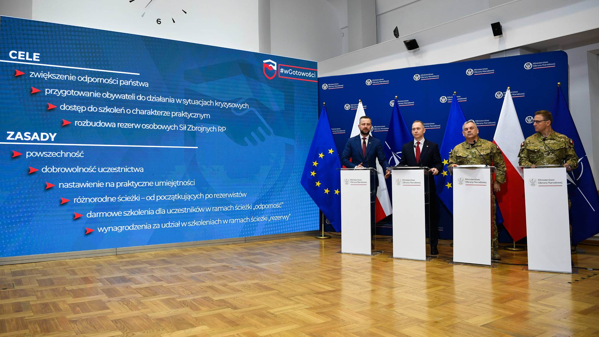 Ministerstwo Obrony Narodowej uruchamia program powszechnych, dobrowolnych szkoleń obronnych „wGotowości", którego celem jest wzmocnienie odporności obywateli i bezpieczeństwa państwa. To pierwsza w historii Polski tak szeroka inicjatywa, pozwalająca każdemu pełnoletniemu obywatelowi zdobyć praktyczne umiejętności potrzebne w sytuacjach zagrożenia – od udzielania pierwszej pomocy, przez przetrwanie, po cyberbezpieczeństwo.