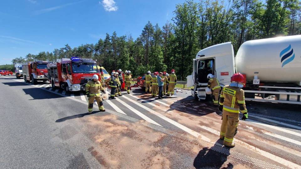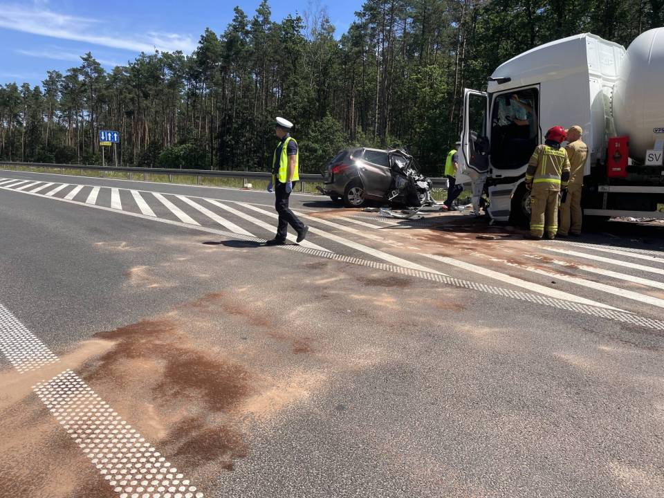 Do zdarzenia doszło w poniedziałek, 30 czerwca tuż przed godziną 10.00 rano. Wstępnie wszystko wskazuje na to, że kierujący samochodem osobowym Kia, zjechał na przeciwległy pas ruchu, wówczas doszło do czołowego zderzenia z ciągnikiem siodłowym przewożącym ładunek gazu.